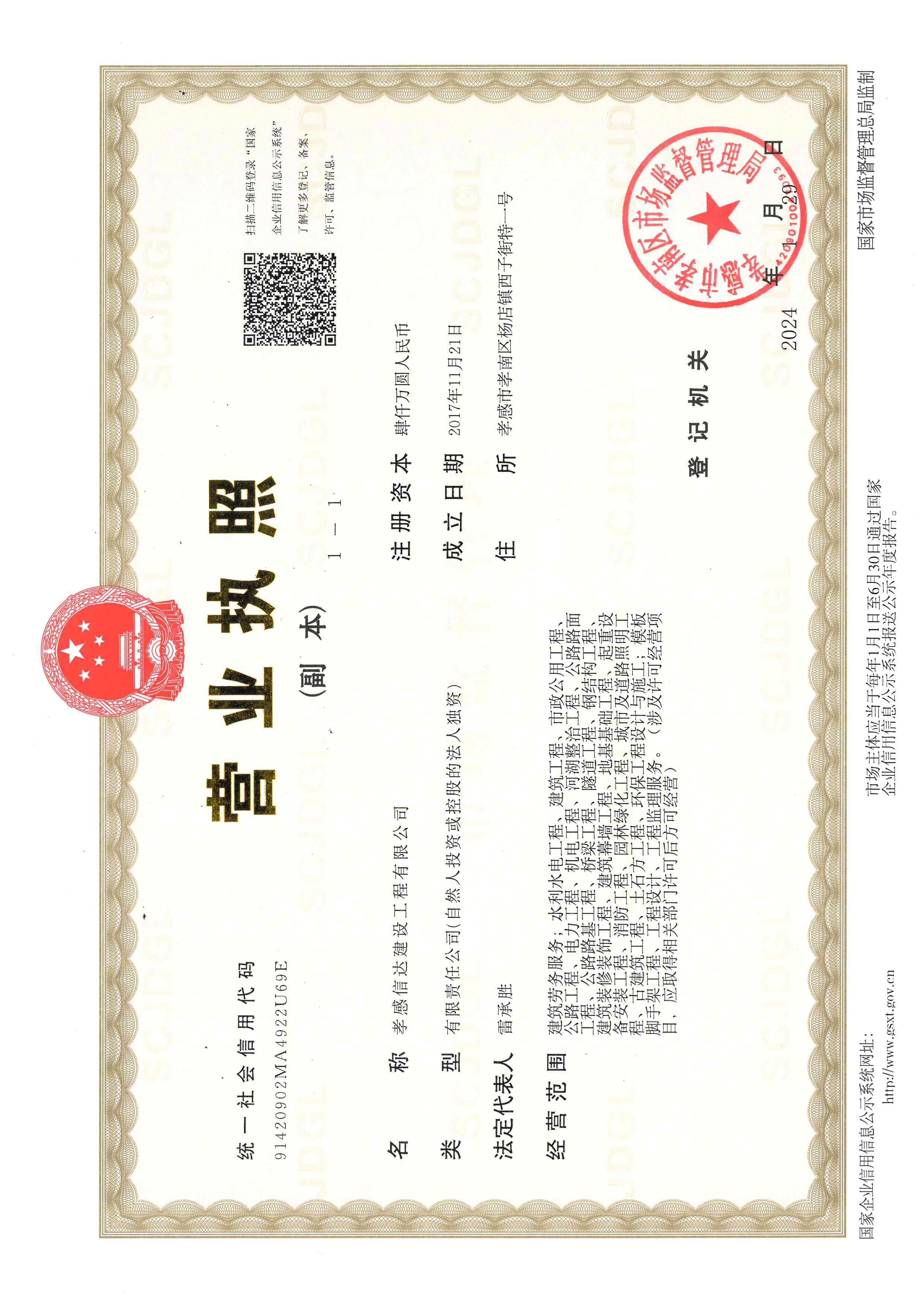 我公司擁有市政公用工程施工總承包貳級(jí)、環(huán)保工程專業(yè)承包貳級(jí)及水利水電工程施工總承包貳級(jí)資質(zhì),經(jīng)營(yíng)范圍:建筑勞務(wù)服務(wù);水利水電工程、建筑工程、市政公用工程、公路工程、電力工程、機(jī)電工程、河湖整治工程、公路路面工程、公路路基工程、橋梁工程、隧道工程、鋼結(jié)構(gòu)工程、建筑裝修裝飾工程、建筑幕墻工程、地基基礎(chǔ)工程、起重設(shè)備安裝工程、消防工程、園林綠化工程、城市及道路照明工程、古建筑工程、土石方工程、環(huán)保工程設(shè)計(jì)與施工;模板腳手架工程、工程設(shè)計(jì)、工程監(jiān)理服務(wù)等。